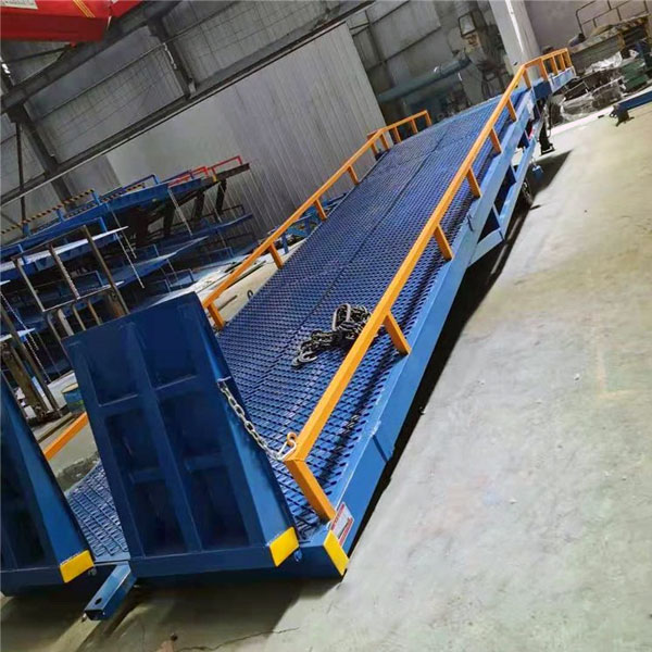 裝卸登車橋-移動式機(jī)械登車橋用于無裝卸設(shè)備的貨臺及流動裝卸場所,是與叉車配合使用的貨物裝卸輔助設(shè)備。借助移動式登車橋,叉車能直接駛?cè)肫嚰b箱內(nèi)部進(jìn)行批量裝卸作業(yè)。只需單人操作,不需動力電源,即可實物的安全快速裝卸。